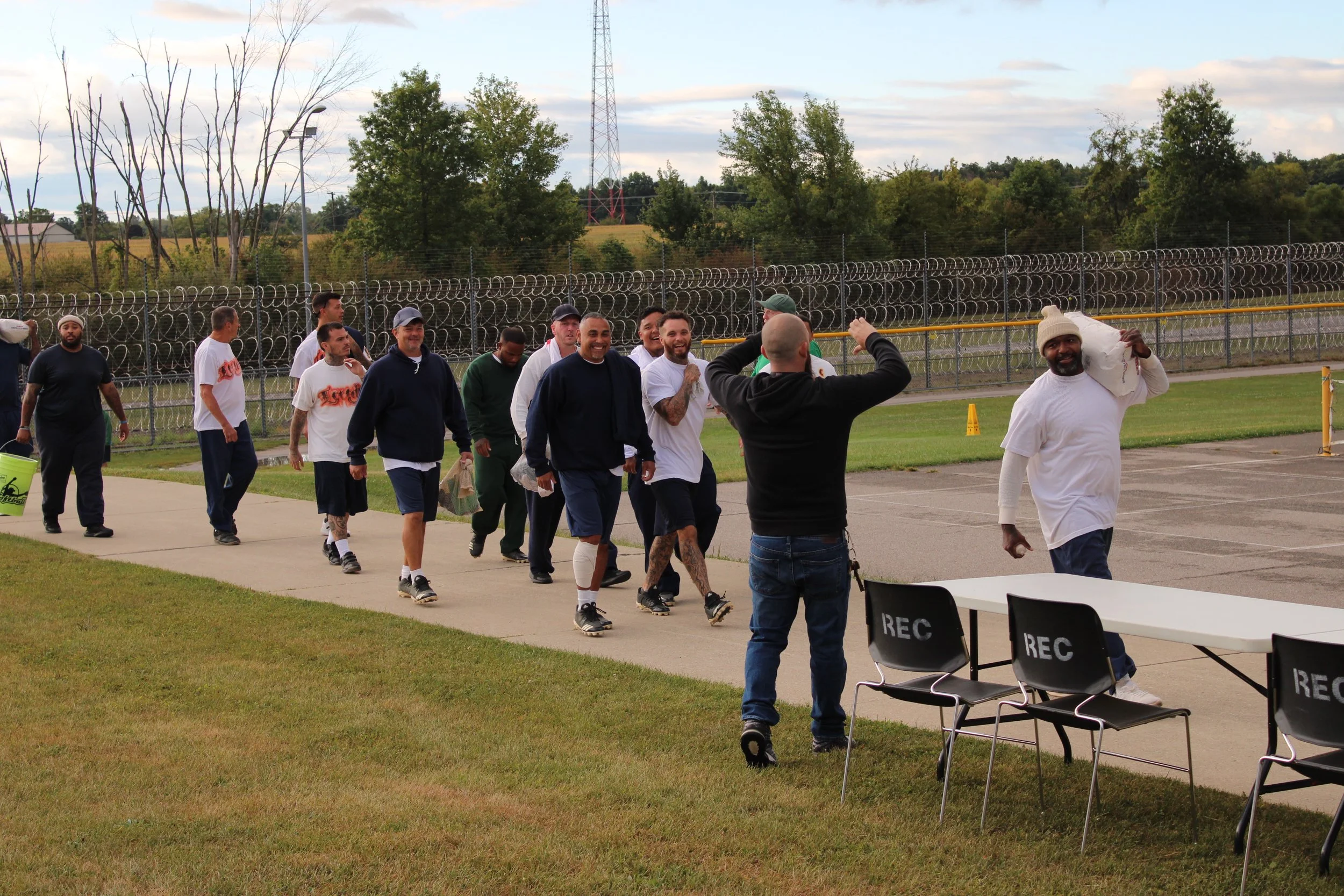 /The weather was cold and not ideal, but the players were ready for True Freedom’s 4th annual Yard Day! Six teams competed in this highly anticipated softball tournament at Grafton Correctional Institution. Along with three prison teams, Grafton Correctional Institution, Grafton Reintegration Center, and Lorain Correctional Institution, we hosted three outside teams, Grace Church at Bath, Grace Church at Middleburg Heights, and Friends to Friends. Grafton Correctional Institution took the prize this year. This special day included a generous cookout that beautifully expressed the love of Jesus. The feast included steaks for the entire prisoner population. After the trophy presentation, executive Director Michael Swiger shared the Gospel. Please pray that seeds planted at this event will bring forth forever fruit. Thank you for your contributions to our ministry, allowing us to serve the broken in creative ways as God touches hearts and calls them to Himself.